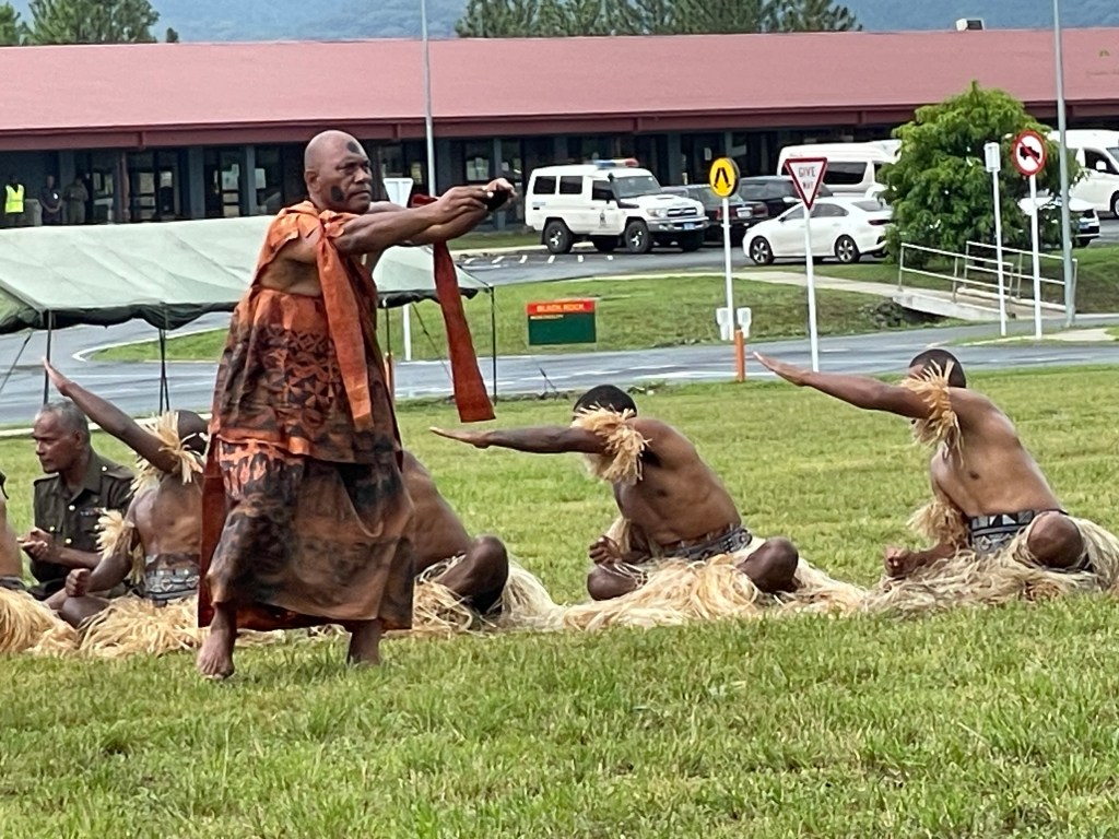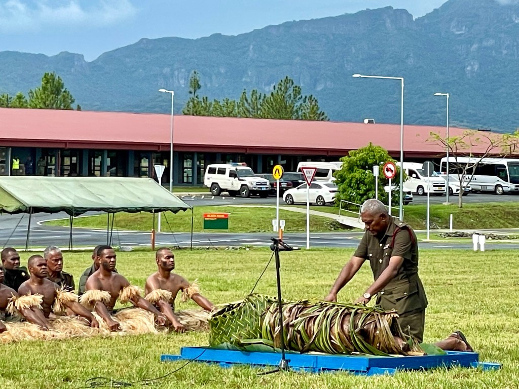But before that, when Austin and his team touched down at the Fiji military’s headquarters for Joint Task Force Command at Black Rock Camp, he was greeted with a traditional welcoming ceremony that demonstrated the historic weight of his visit.