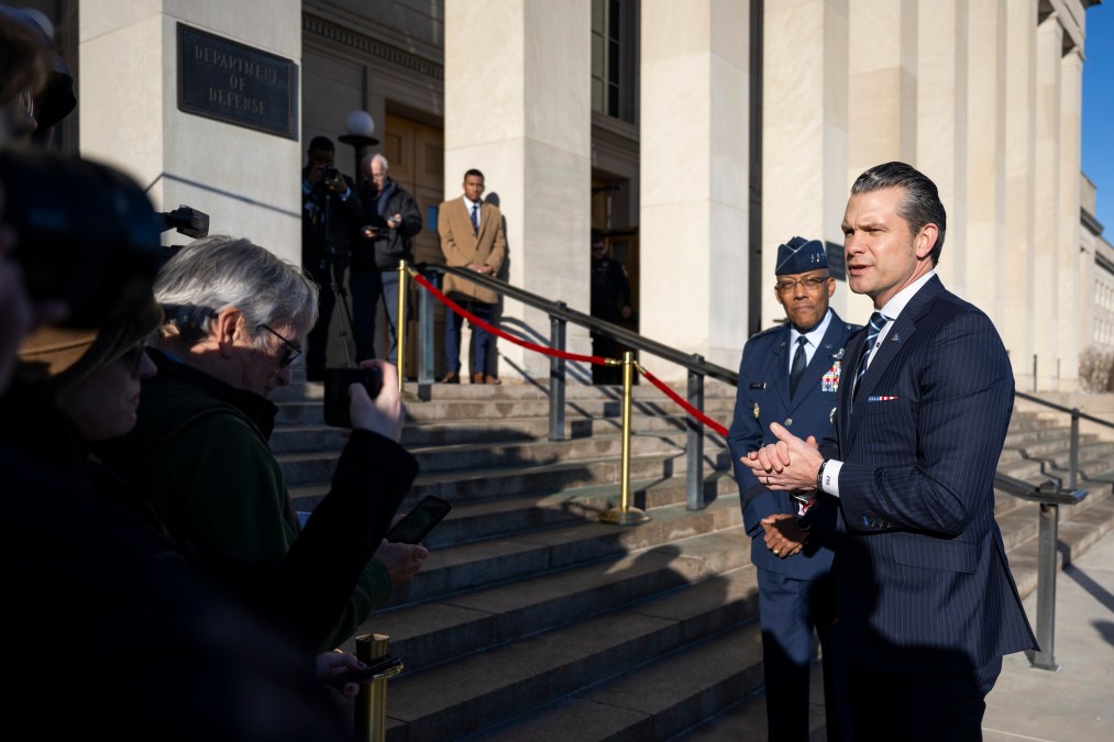 “Our job is lethality, and readiness and warfighting,” Hegseth told a small group of reporters on the steps outside the Pentagon’s River Entrance.