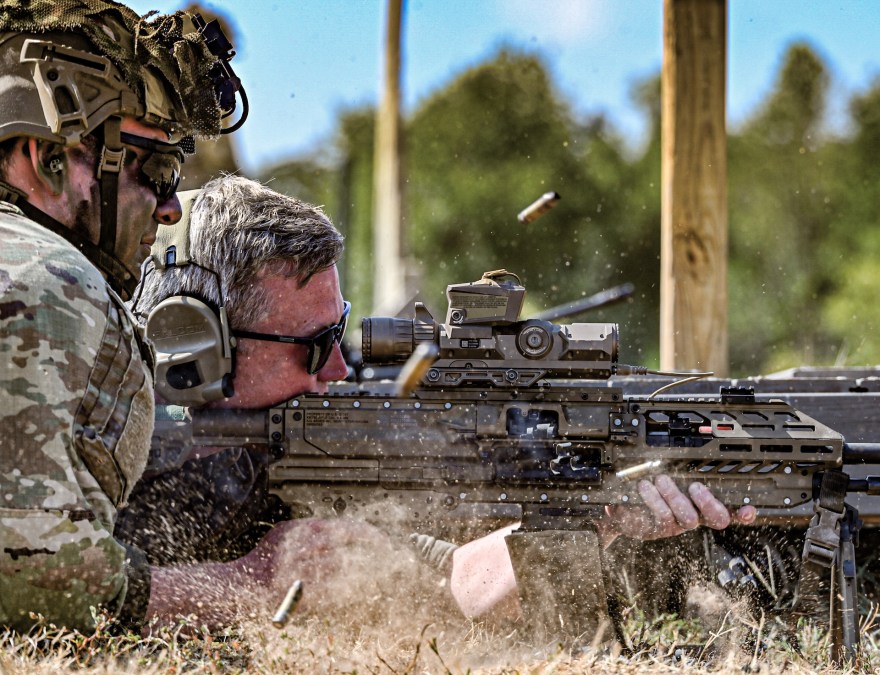 Secretary of the Army Dan Driscoll fires the M250 while visiting Fort Campbell, Ky., September 9, 2025. (U.S. Army photo by Sgt. David Resnick)