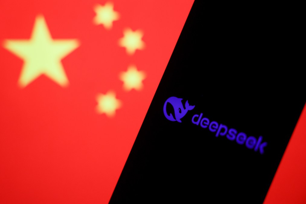 Chinese flag displayed on a laptop screen and DeepSeek logo displayed on a phone screen are seen in this illustration photo taken in Krakow, Poland on January 28, 2025. (Photo by Jakub Porzycki/NurPhoto via Getty Images)