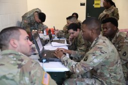 Soldiers assigned to the 753rd Brigade Engineering Battalion (BEB), work on Non-classified Internet Protocol (IP) Router Network (NIPRnet) connectivity connections during the 53d Infantry Brigade Combat Team’s (IBCT) Signal Exercise on Feb. 3rd, 2023. (Florida Army National Guard photo by Staff Sgt. Cassandra Vieira)