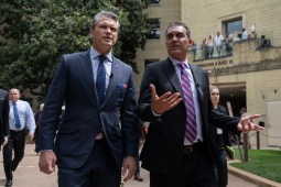 Secretary of Defense Pete Hegseth and Under Secretary of Defense for Research and Engineering Emil Michael tour multi-domain autonomous displays in the courtyard of the Pentagon, Washington, D.C., July 16, 2025. (DoD photo by U.S. Navy Petty Officer 1st Class Alexander Kubitza)