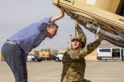 Secretary of the Army, Honorable Daniel P. Driscoll, receives a hands-on walkthrough of the Terminal High Altitude Area Defense launcher from Soldiers assigned to Alpha Battery, 4th Air Defense Artillery Regiment at Fort Bliss, Texas, March 26, 2025. The briefing included launcher components, critical safety features, and maintenance responsibilities required to sustain air and missile defense readiness. (U.S. Army photo by Sgt. JaDarius Duncan)