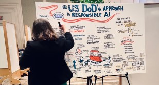 Artist draws a live interpretation of the Responsible AI Toolkit panel at the CDAO’s RAI Forum on Oct. 29, 2024. (Photo by Brandi Vincent) How DOD will help agencies comply with the White House’s new rules for AI in national security The CDAO for Policy John Turner shared new details with DefenseScoop in an interview this week. Oct 31, 2024 By Brandi Vincent