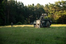 U.S. Army Stryker M1127 Reconnaissance Vehicles, assigned to Lightning Platoon, 3rd Squadron, 2nd Cavalry Regiment, are staged to demonstrate anti-UAS capabilities during the static display portion of Project Flytrap 4.0, at Bemowo Piskie Training Area, July 29, 2025. Soldiers from the U.S. Army’s 2nd Cavalry Regiment joined the British army’s 1st Battalion, Royal Yorkshire Regiment, July 27 to August 1, 2025, to train and test technology and tactics to defeat unmanned aerial systems (UAS) threats during Project Flytrap. Project Flytrap 4.0 is the fourth in a series of counter-UAS training events conducted by Soldiers from the U.S. and U.K. (U.S. Army photo by Sgt. Alejandro Carrasquel)