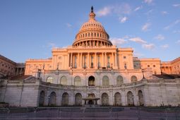The U.S. Capitol building at dusk as vehicles travel on Pennsylvania Avenue on November 05, 2023 in Washington DC. (Photo by Kevin Carter/Getty Images)